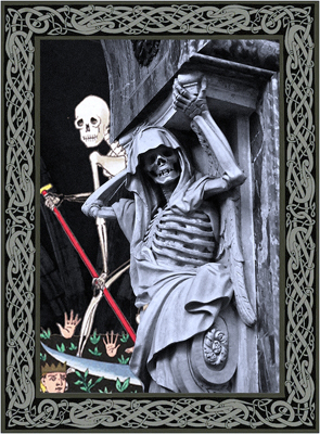 4th Row: XII Hanged Woman - Noble Palace (Ukraine), XIII Death - Châteauneuf-Sur-Loire, France, XVI Tower - Bath Abbey (England)