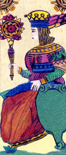 The missing Queens (Cups and Coins) have been redesigned and processed through Photoshop, referring to the double sided, Court Cards of 18th century,