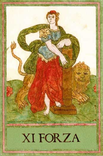 titles on the 22 cards are in Italian and have traditional Roman numerals. Justice is